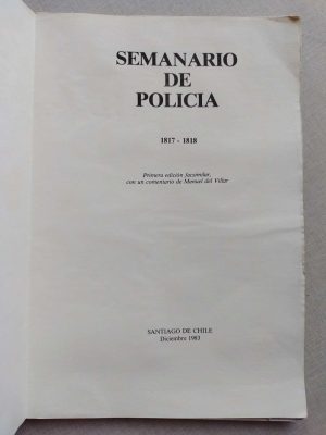 Semanario De Policia 1817-1818 Edición Facsimilar 1983