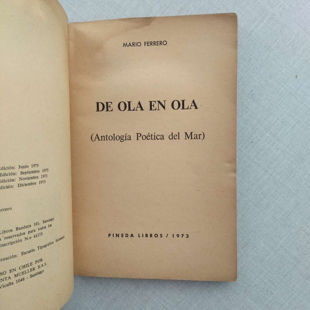 De Ola En Ola Antología Poética Del Mar Mario Ferrero 1973 quantity