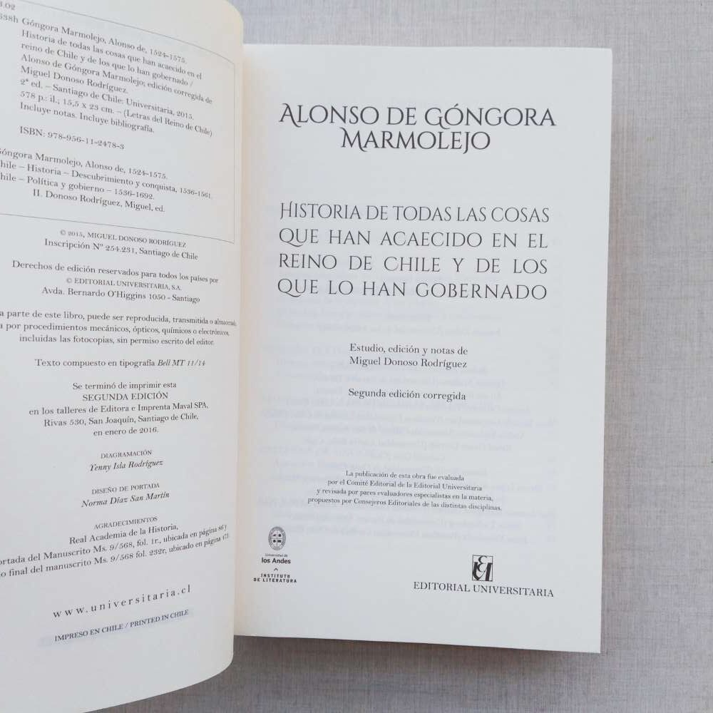 Historia De Todas Las Cosas En El Reino De Chile Alonso De Gongora Marmolejo 2016 quantity
